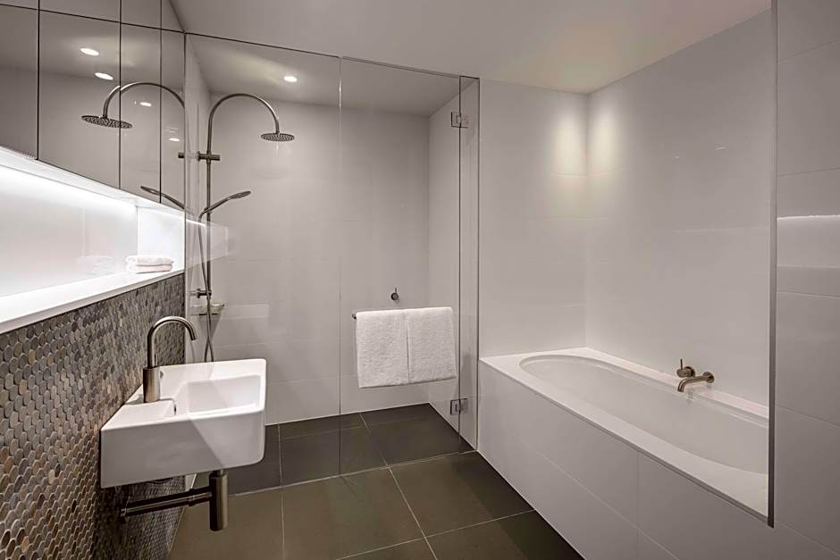 Featuring two rooms with plush king beds complete with two bathrooms with a walk-in shower and separate bath. Enjoy lake Burley Griffin Views on your private balcony. Guests can also enjoy O&M amenities, along with an in-room kitchen, tea and coffee making facilities and mini-bar.