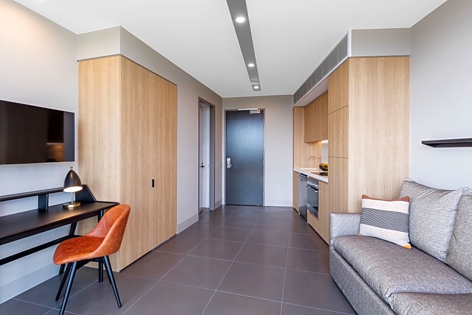 Featuring a plush king size bed complete with a modern ensuite with a walk-in shower and separate bath. Enjoy lake Burley Griffin Views on your private balcony. Guests can also enjoy O&M amenities, along with an in-room kitchen, tea and coffee making facilities and mini-bar.